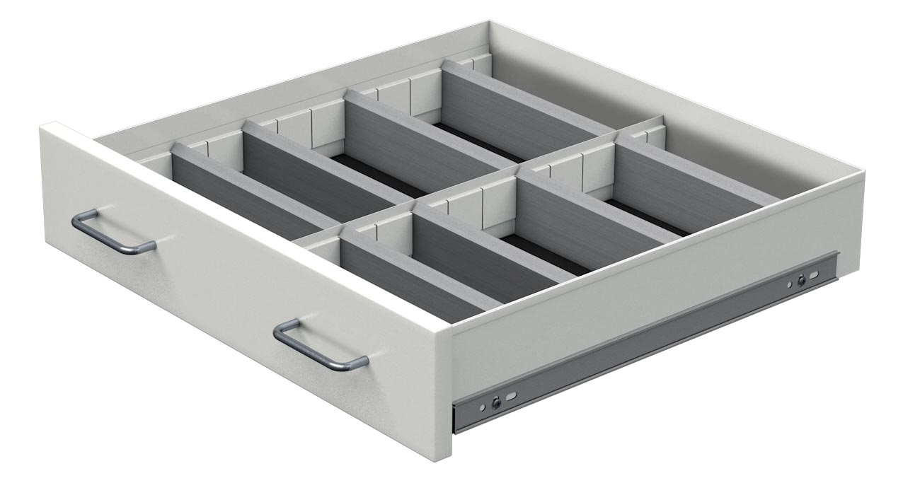 Organize your Teclab cabinets with these drop-in kits. Made to fit “A” and “B” drawers with stainless steel handles in all cabinet widths. Each kit comes with 2 side rails, drawer mats, and enough spacers to configure drawers in many ways.